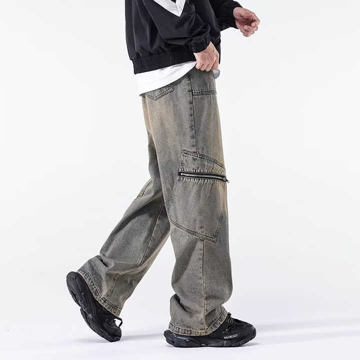 Denim Pants Custom Embroidery Logo Men's Pants Washed Jean Vintage Pants Loose Straight Pocket Baggy Jeans Men Wide Leg