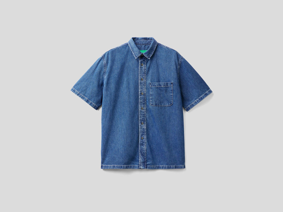 Denim Shirts washed cotton elastic Blue black White denim fabric jeans men's shirt clothing fabric jean faded stone washed shirt