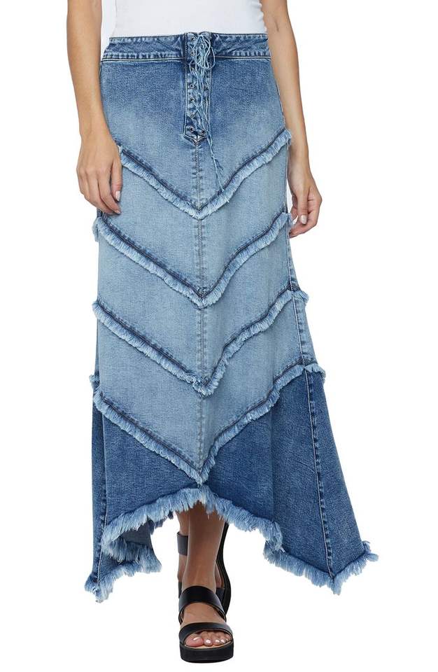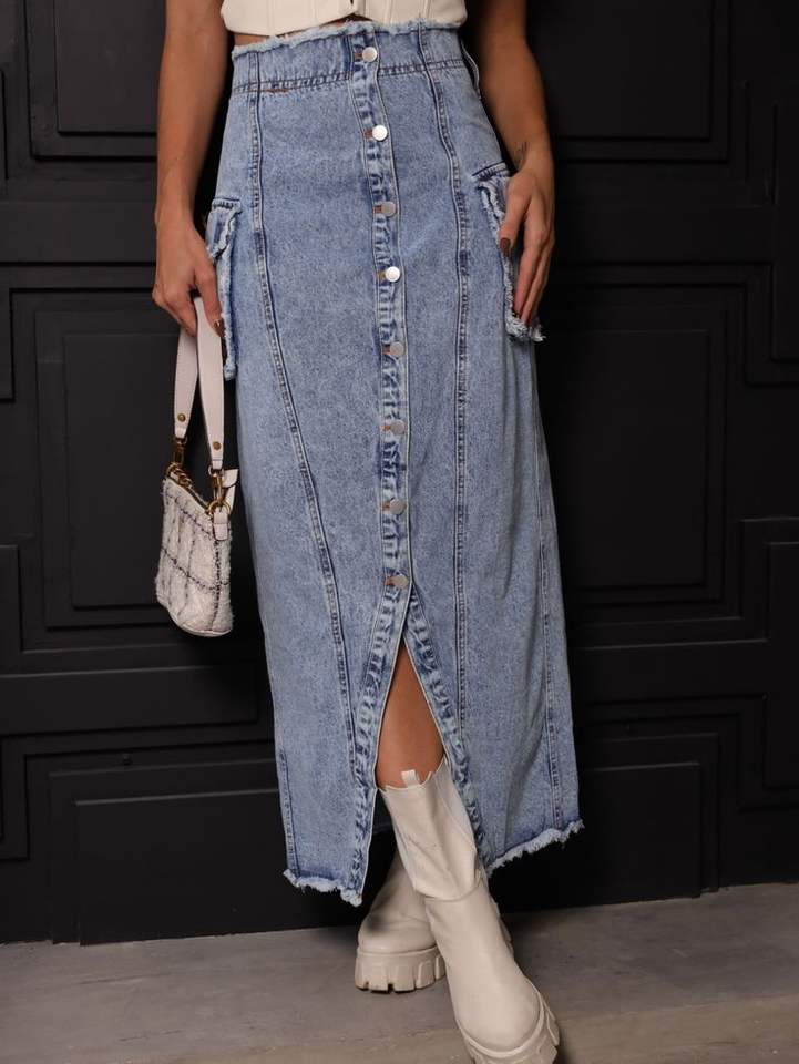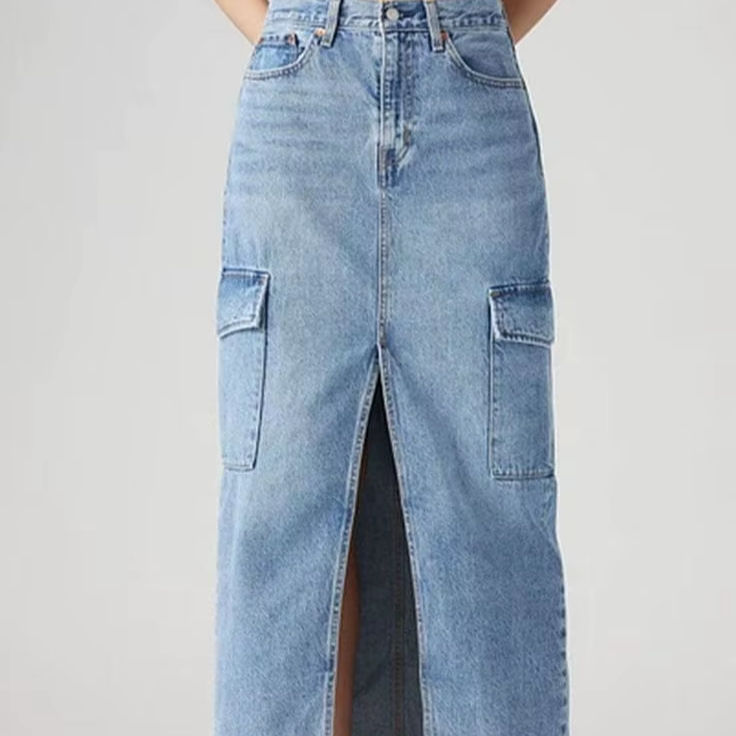 key words:Denim long split skirt