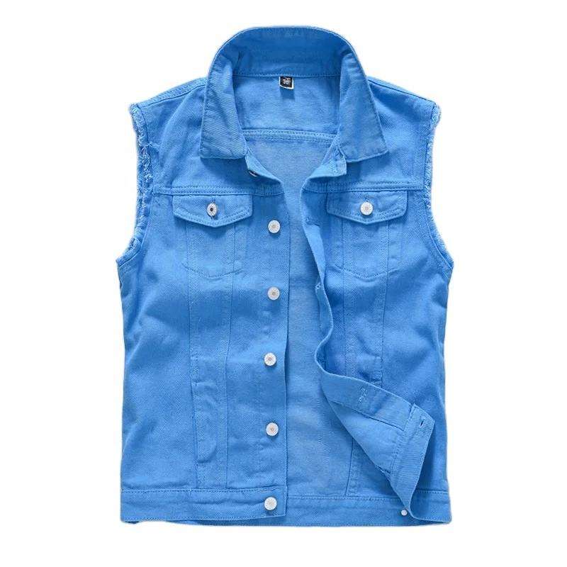 Denim Vest Jacket for Men Fashion Stretchy Trucker SleevelessJean Outerwear Grey Black Medium Custom Jean Vest Ripped Denim Vest