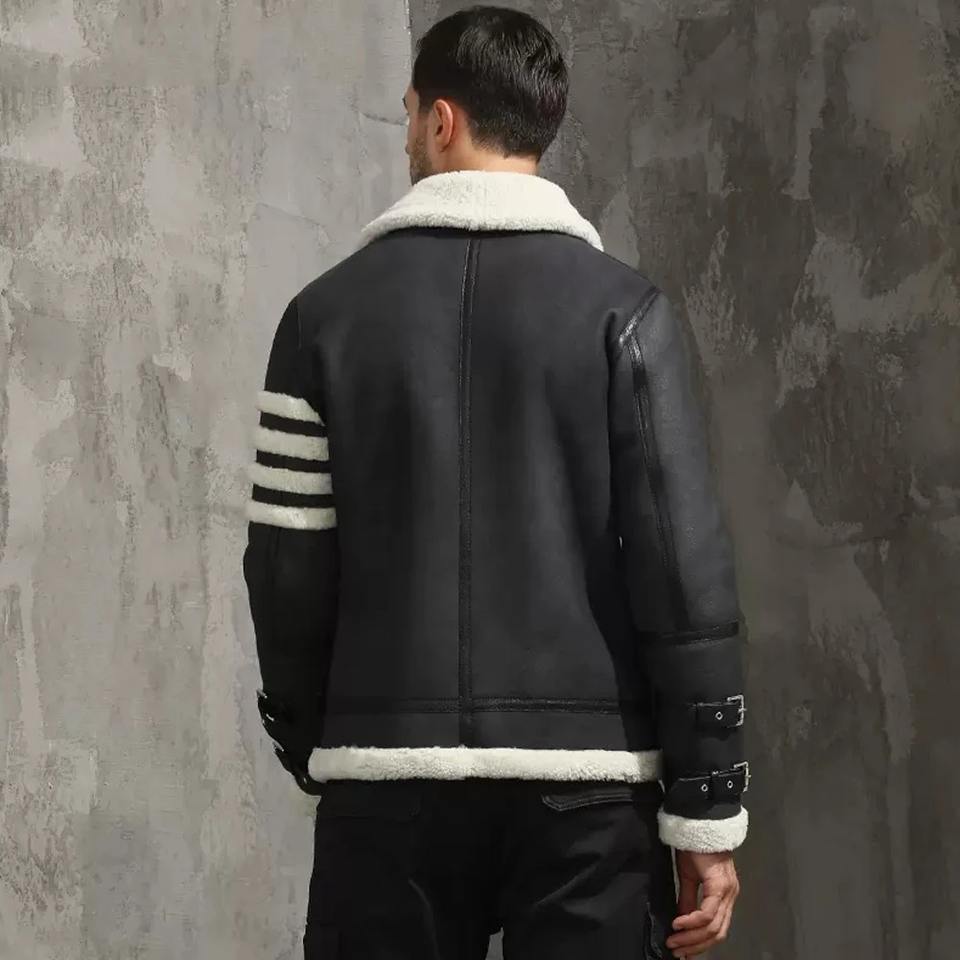 Denny&Dora Mens Grey Canvas Sheepskin Regular Fit Genuine Leather Winter Jacket Waterproof & Breathable