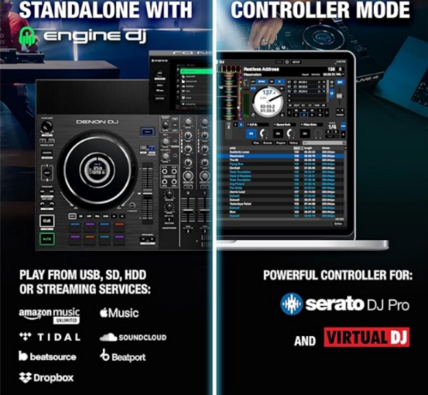 Denon DJ SC LIVE 4 Standalone DJ Controller with Stem Separation on 4-Decks, Wi-Fi Streaming, Build-in Speakers, Serato DJ