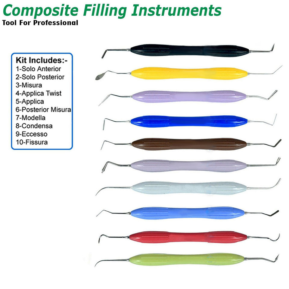 Dental Composite Filling LM Set Silicone Handle Colorful 10 Pcs Surgical Instruments By Vaslcare