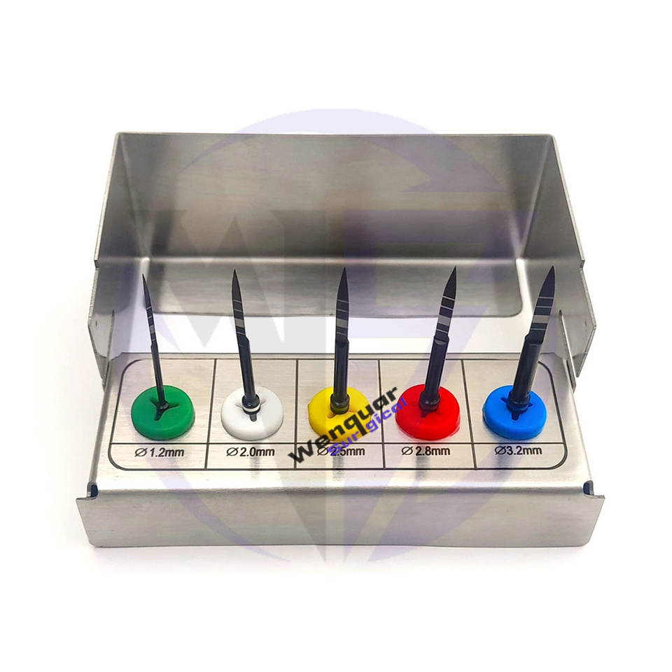 Specification:5 Pcs Long Lance, Pilot, Spade & Marking Drills with Bur Holder