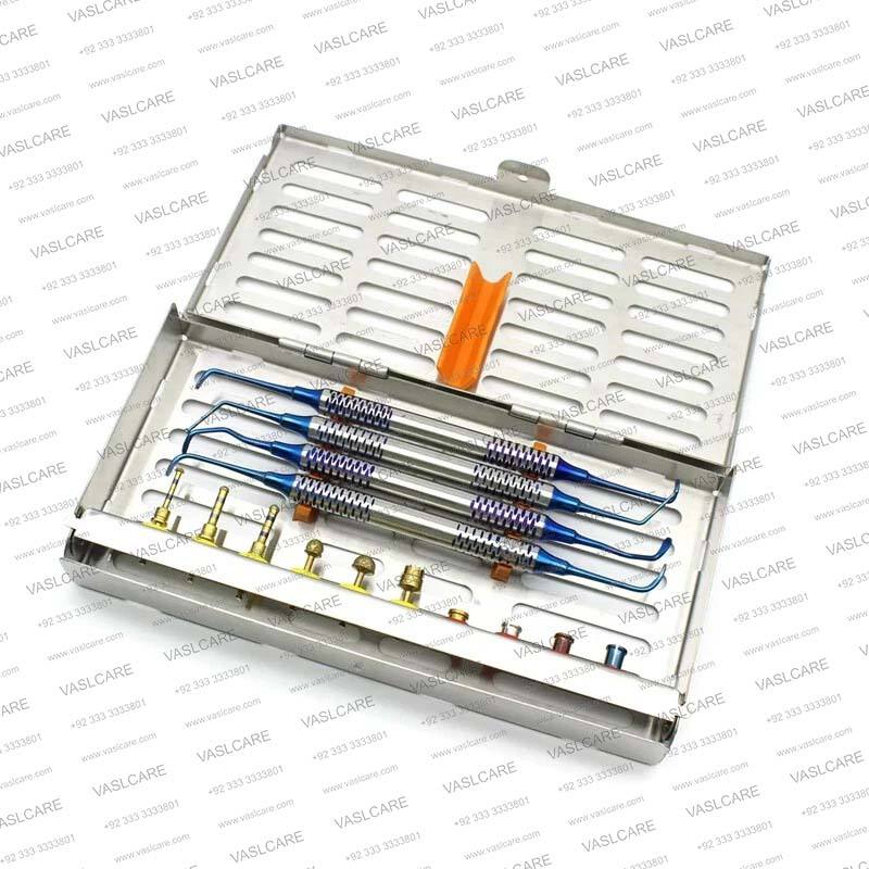 Specification:Stainless steel, depth control from 2 mm to 8 mm, Internal cooling for crestal drills, Crestal using smaller drills and stoppers through existing osteotomy
