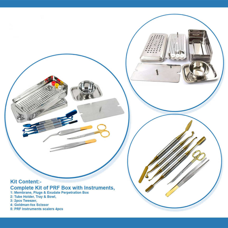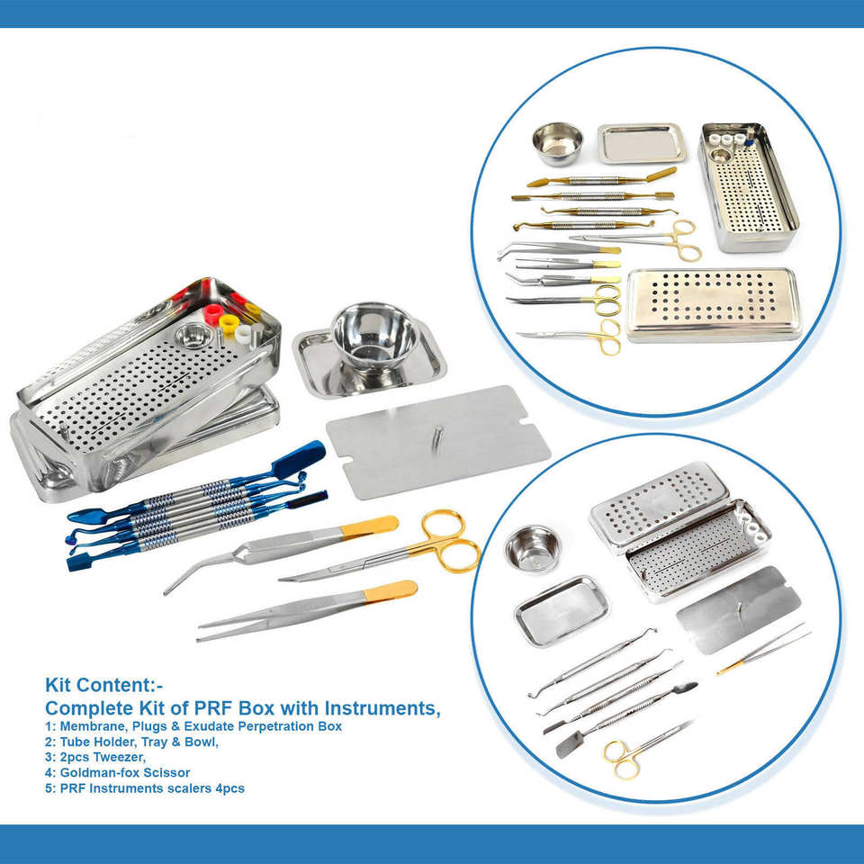 Dental PRF Box & PRF Instruments GRF System Platelet Rich Fibrin Set Implant Surgery Membrane Kit Steel Box by Blush Surgical