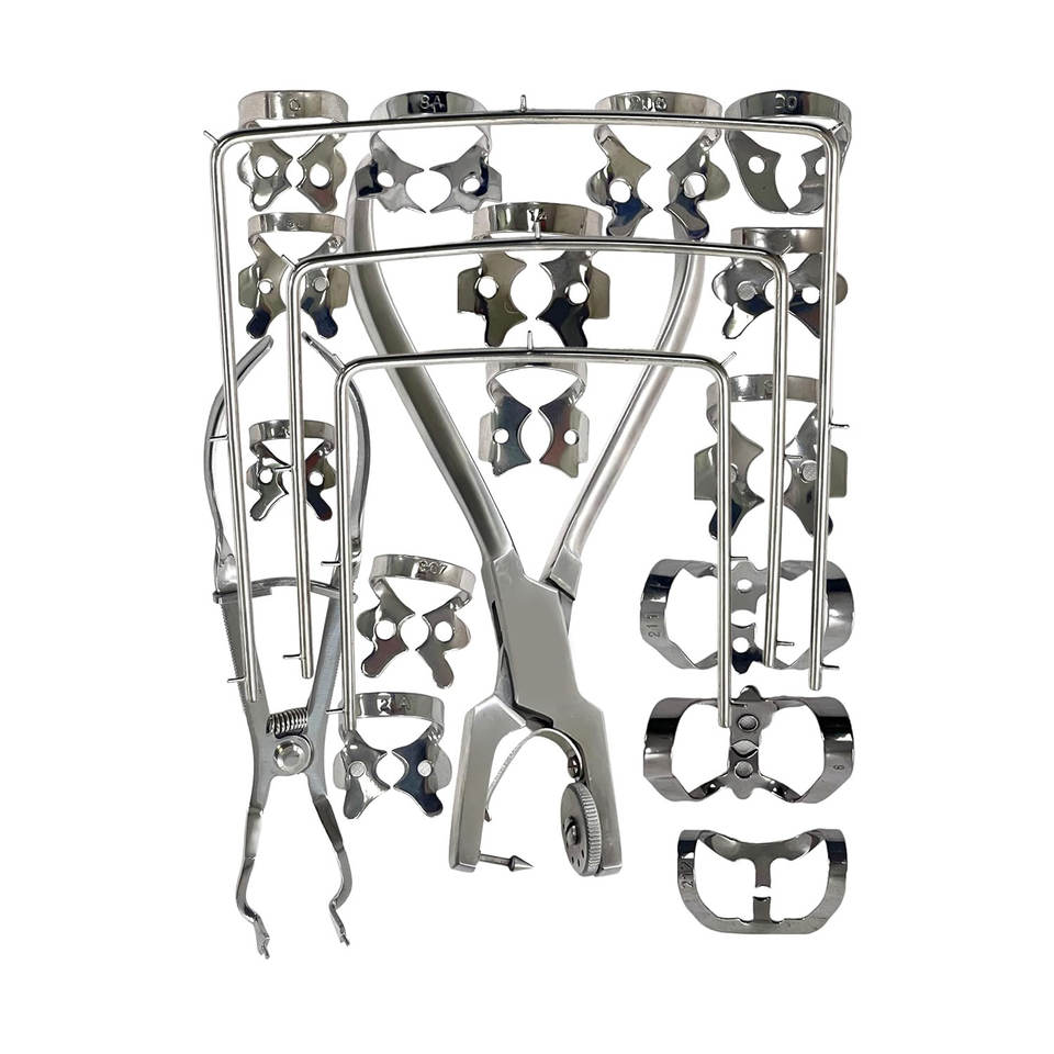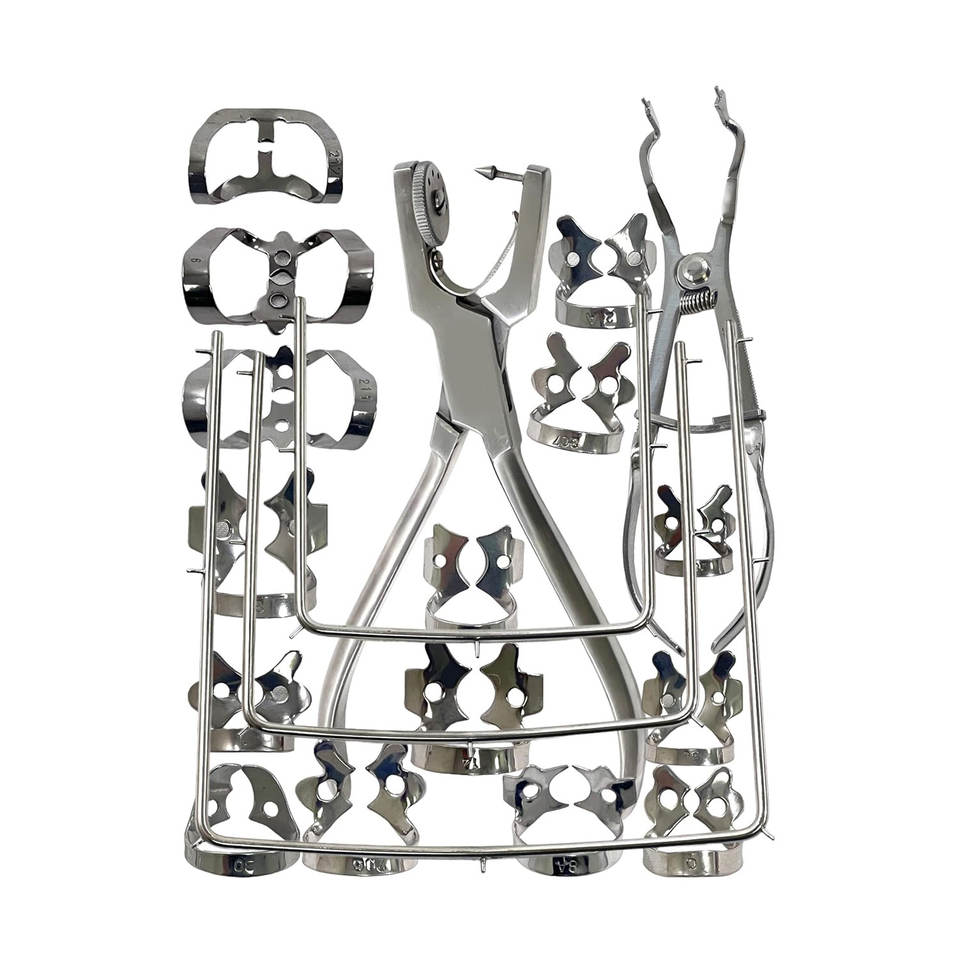Dental Rubber Dam Clamps Set Complete Rubber Dam Kit Starter Frame Rubber Dam Punch Plier Rubber Dam Clamps Forceps Professional