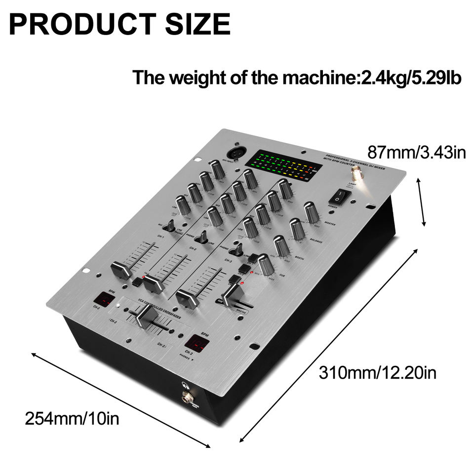 Depusheng DX626 Professional 3 Channel DJ Mixing with BPM Counter Audio DJ Mixer Console