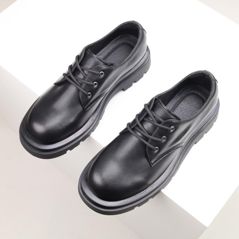 Derby shoes - genuine leather low-top, simple thick sole, elevated design, black workwear style, casual men's leather shoes
