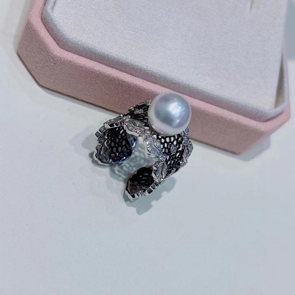 Design 10-11mm Round Natural Pearl Ring S925 Silver with Lace Hollow Handcrafted Strong Light Fine Flaws Ring