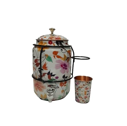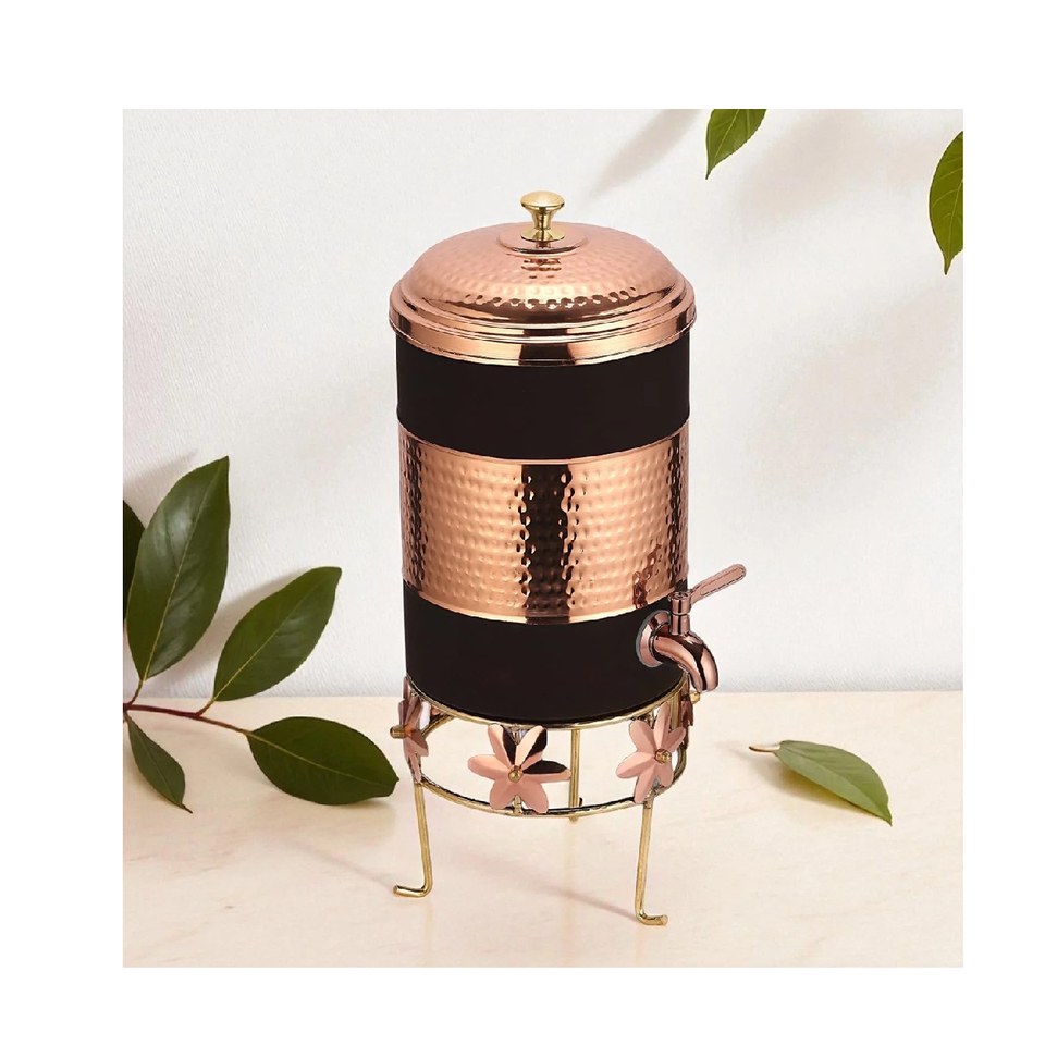 Design Copper Water Cooler Decorative Hammered 100% Copper Water Drink Dispenser with black metal stand with 1 glass