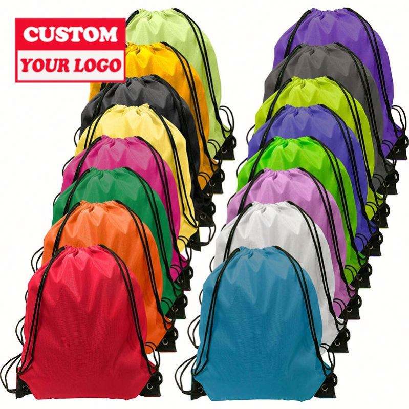 Design Custom Logo 210D Polyester Waterproof Sports Backpack Promotional Packaging With Printed Drawstring Bag