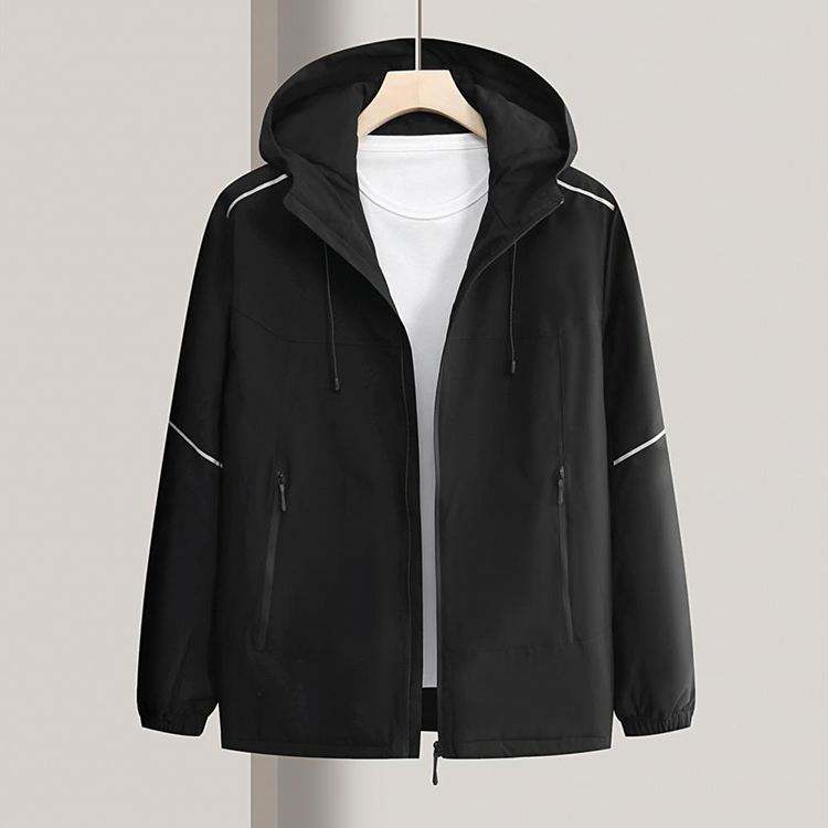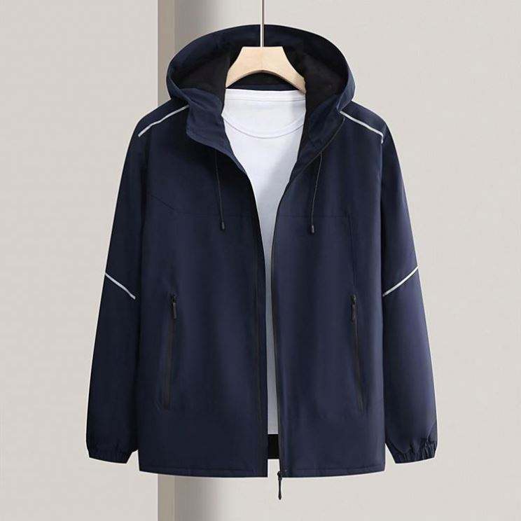 Design Customized Hooded Rain Jacket for Men Waterproof Casual Outdoor Workout Zipper Breathable Plus Size Blouson Printed