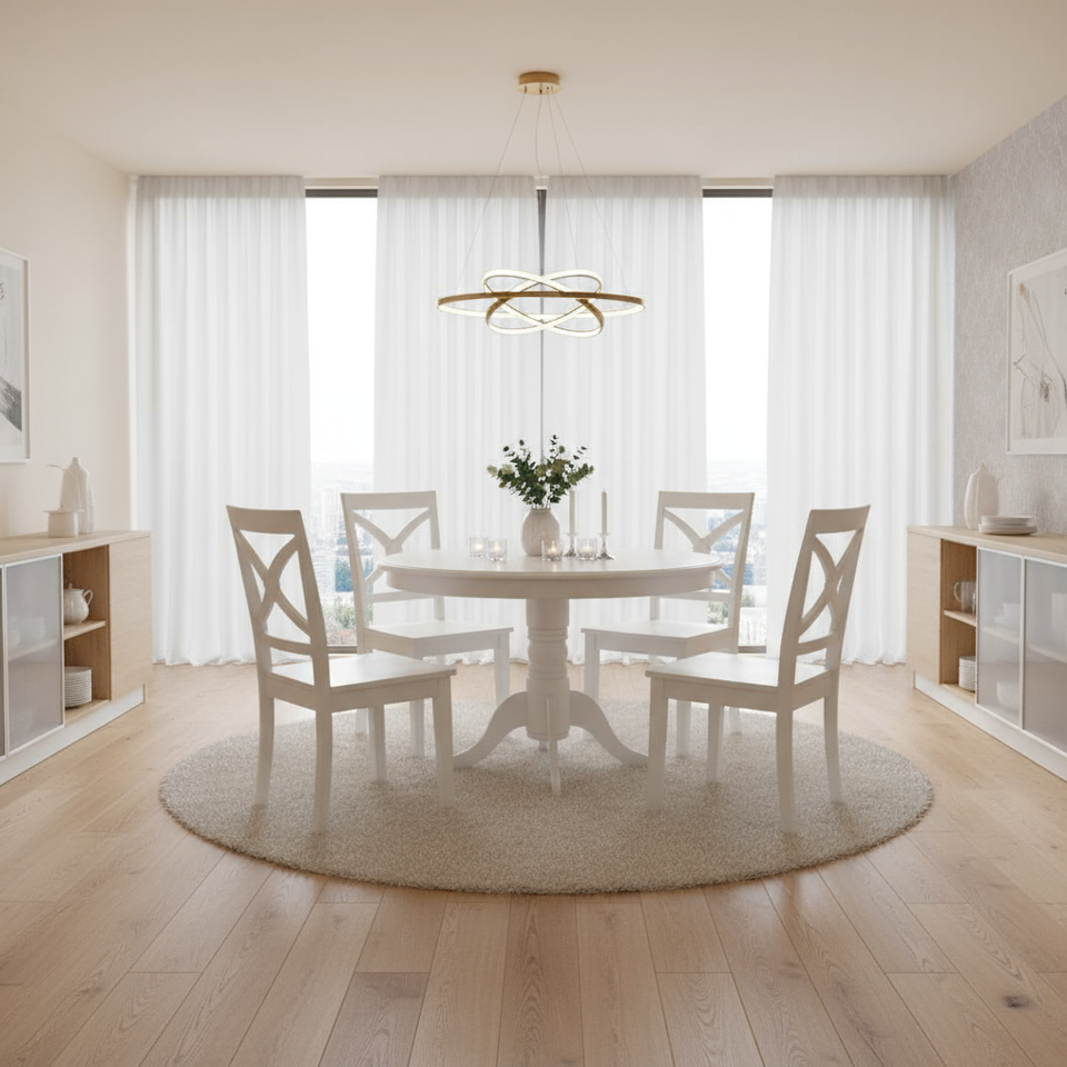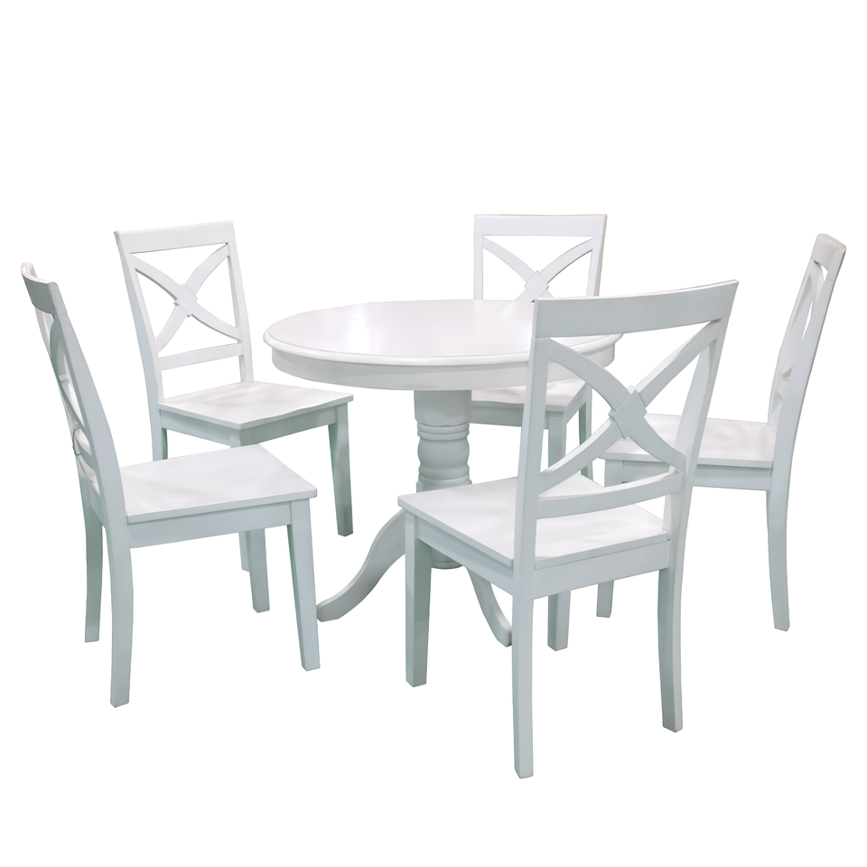 Design Foldable Chic White Dining Table Set 5 Chairs Modern High Quality Eco-Friendly Wood Traditional Vietnam Made OEM Brand