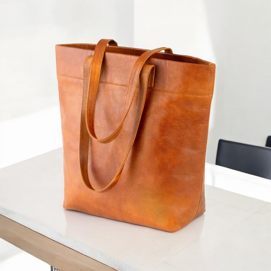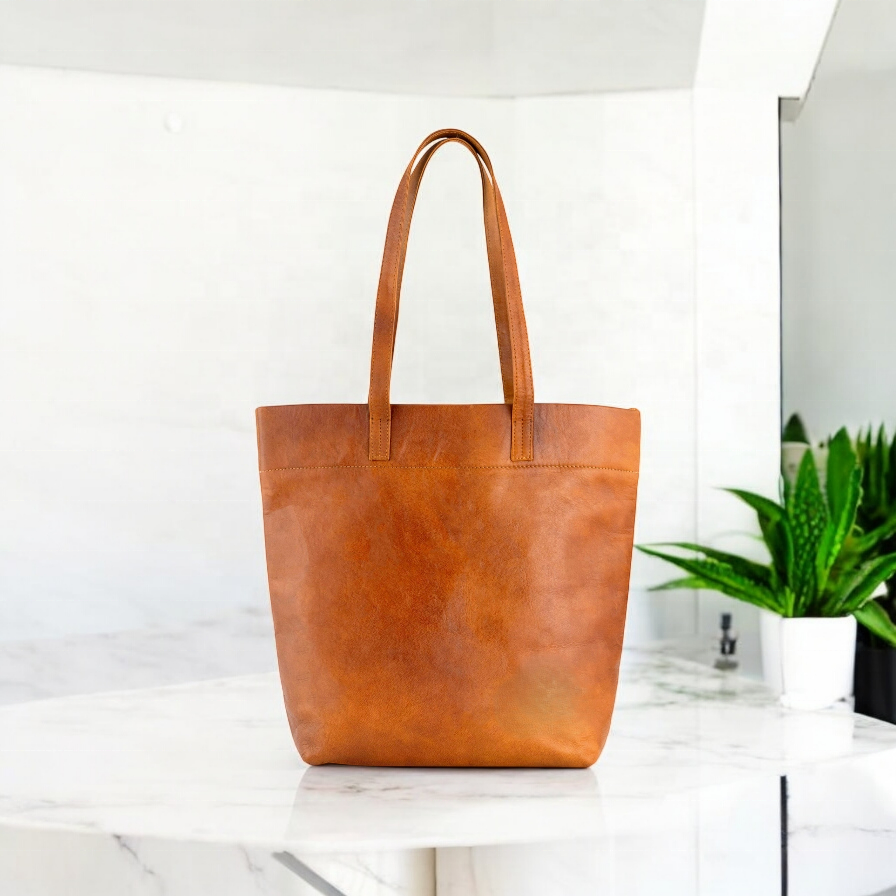 Design Genuine Leather Fashionable Women Tote Bag Brand Office Large Handbag and Purse Custom Logo OEM & FBA Product