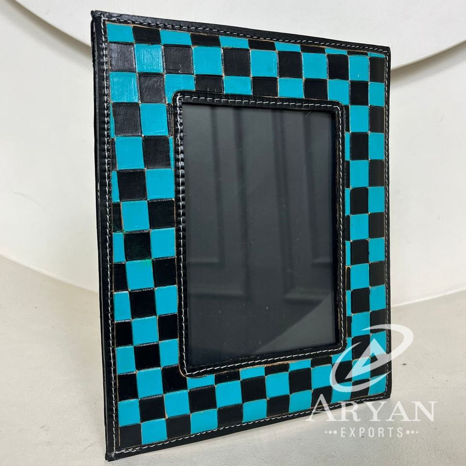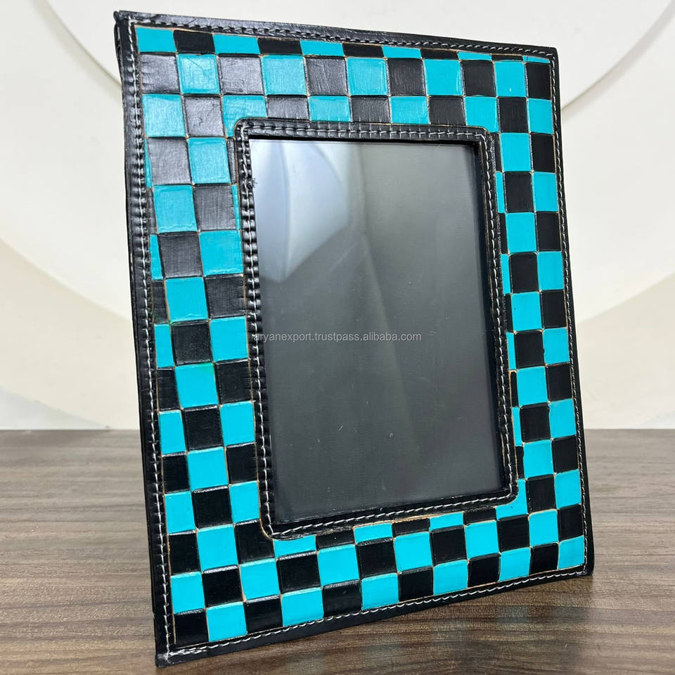 Product Name:Hand Tooled Checkered Leather Picture Photo Frame