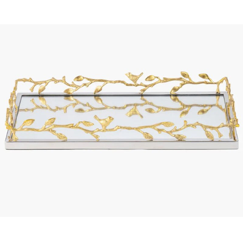 Design Handle Table Decoration Tray Fancy Square Shape New Design Gold Platted with Green Enamel Color Bamboo