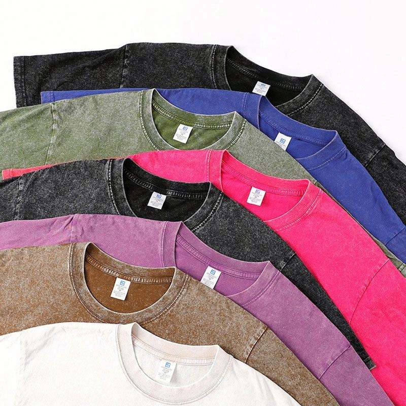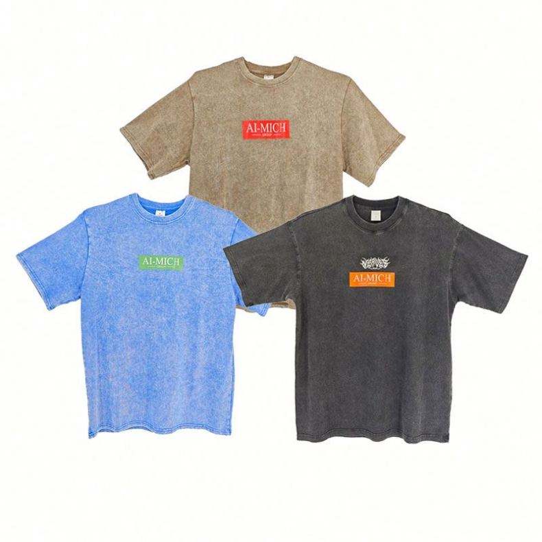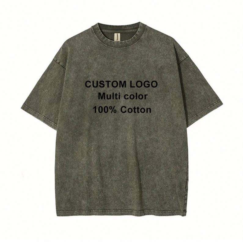 Design Heavyweight Washed Embossed T-Shirt Acid Wash Oversized Drop Shoulder Casual Wear Men Vintage Tee