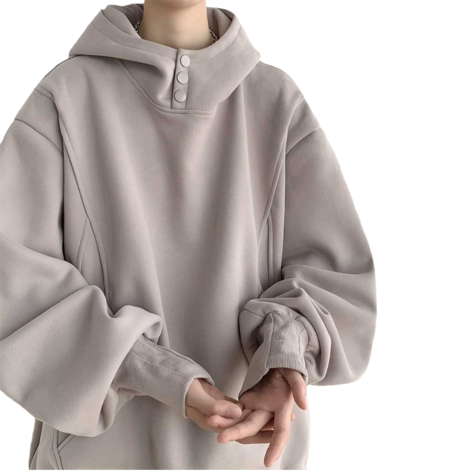 Design High Street Pullover Hoodie for Men Double Zipper Lined Loose Solid Knitted Fleece Winter Crop Jacket