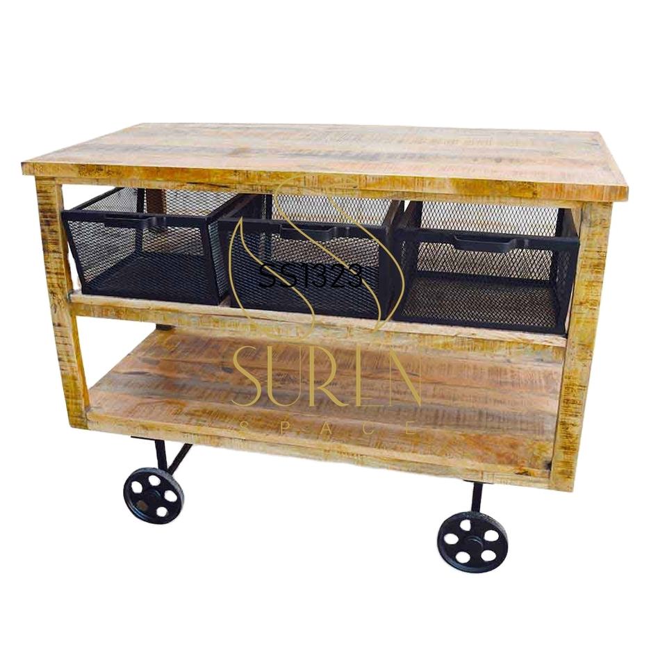 Design Iron Basket Industrial Cart Wooden Iron Hotel Trolley