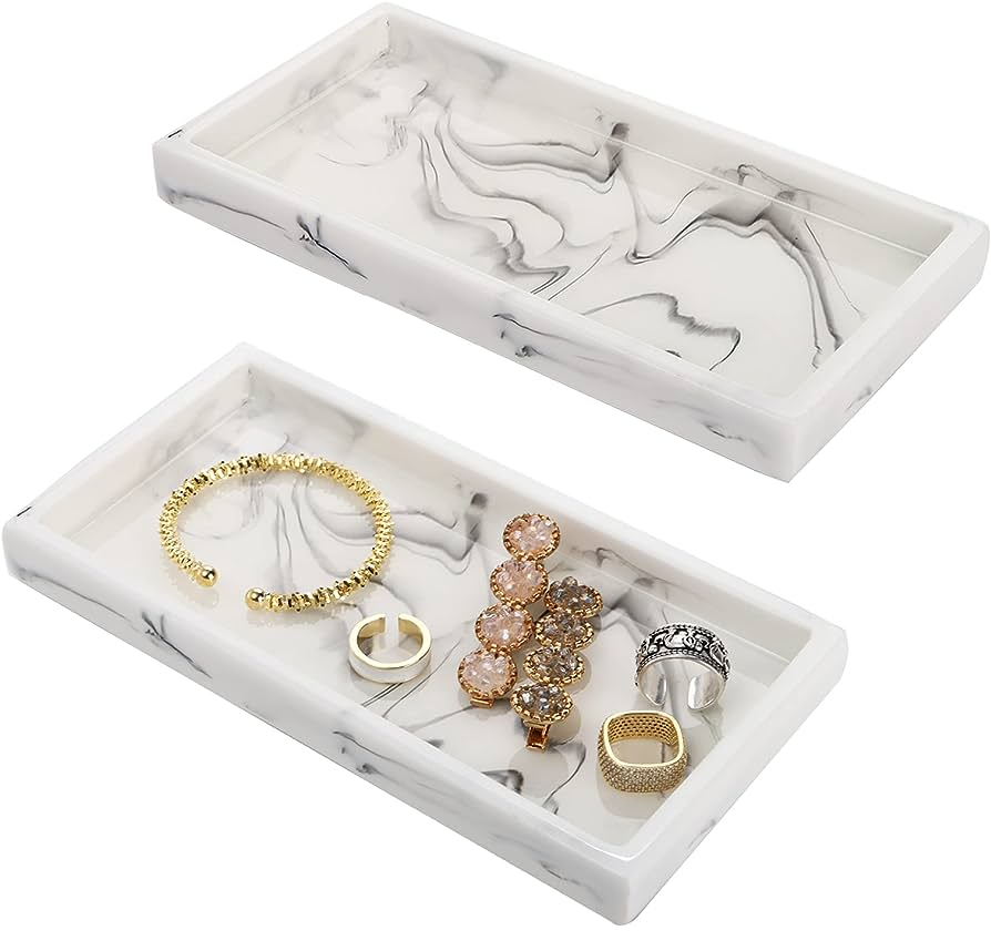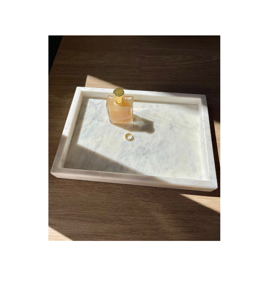 Design Marble Tray Natural Stone White Color With Metal safe Handle Silver Color Serving Tray Premium Quality Handcrafted