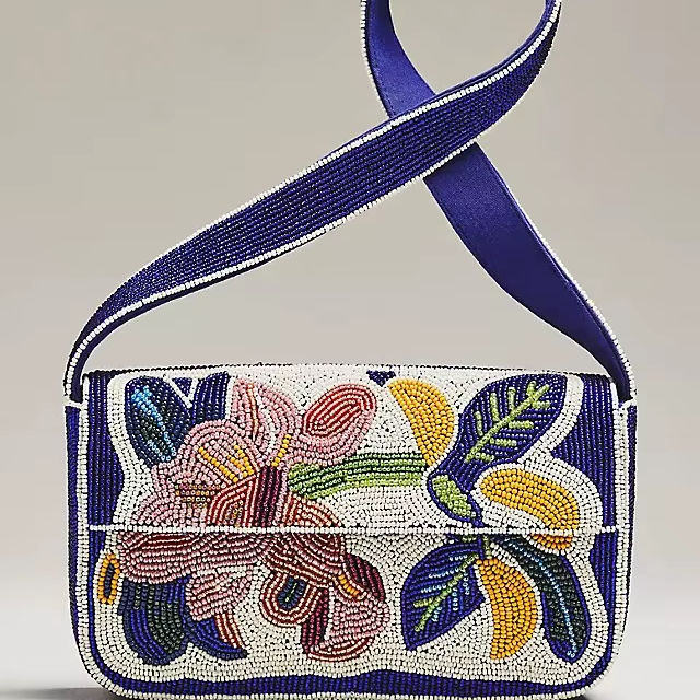 Design Seed Beads Embroidery Clutch Bag Handcrafted Beaded Clutch Intricate Artisanal Floral Motif Hand-stitched Small Beads