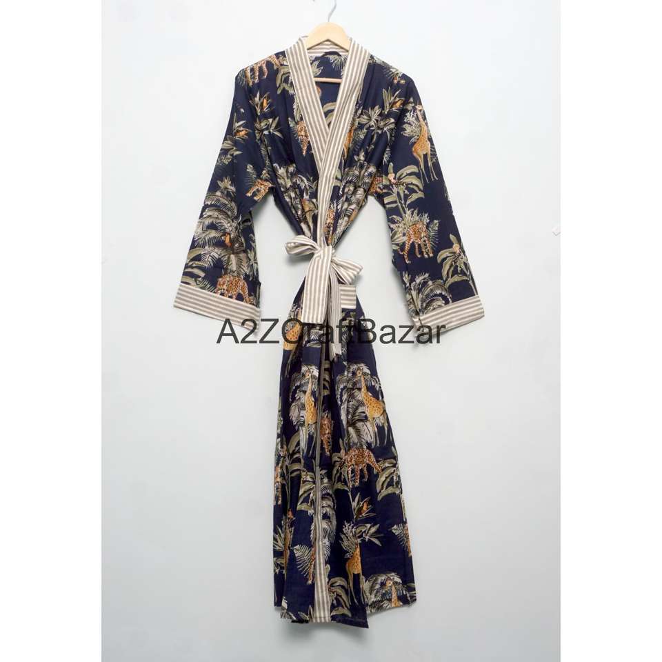 Design Stylish 100% Pure Cotton Kimono Robe Fashionable Soft Casual Floral Pattern Colorful Adjustable Belt Summer Winter