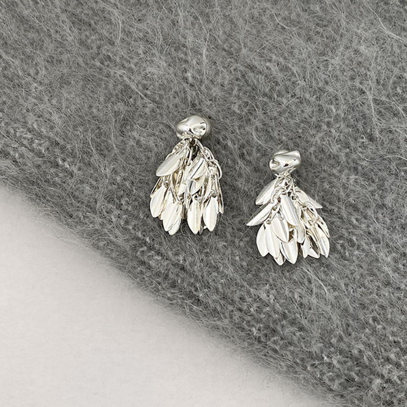 Design Wheat Ear Metal Tassel Pendant Earrings For Women Light Luxury Simple Fashionable All Match Earrings
