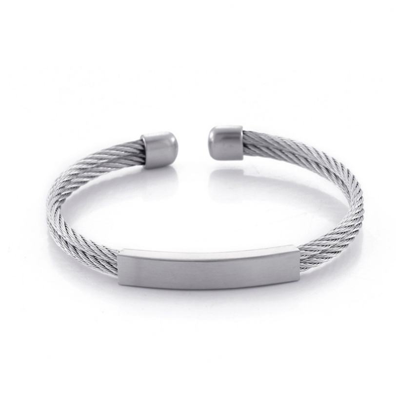 Design Wholesale Custom Anti-Allergy High Polish Stainless Steel Wire Cuff Bracelet