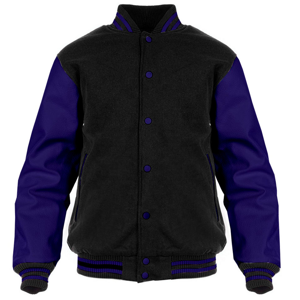 Design Your Own High School Varsity Jacket with Black Wool Body and Navy Blue Real Leather CollegeBaseballjacket for men