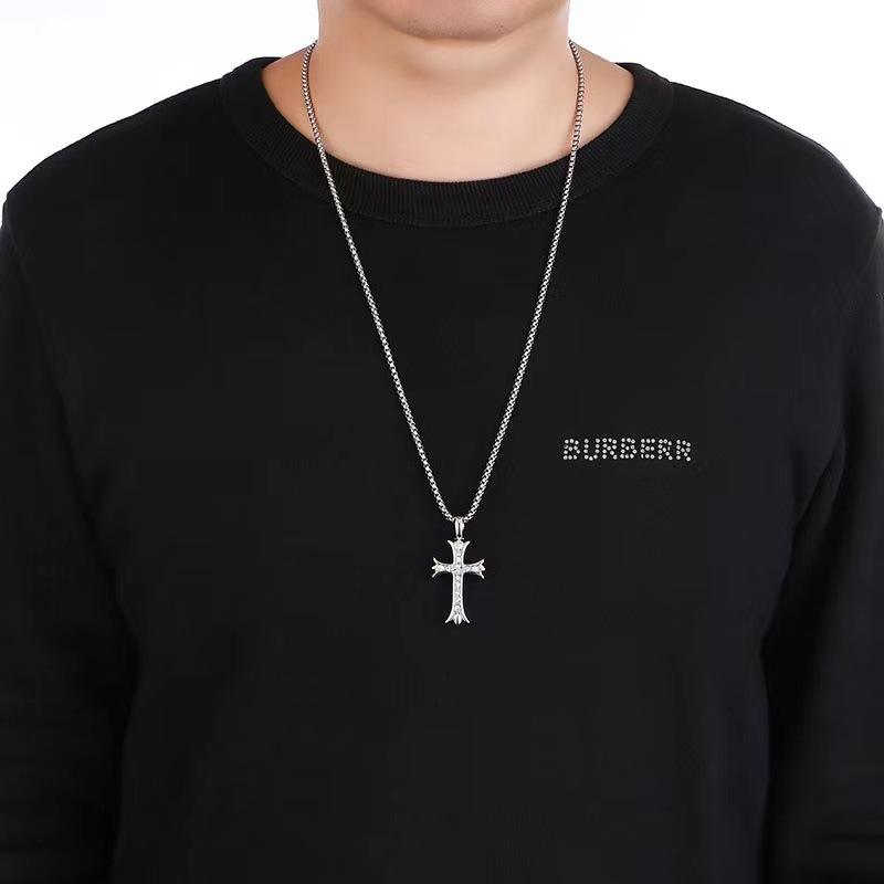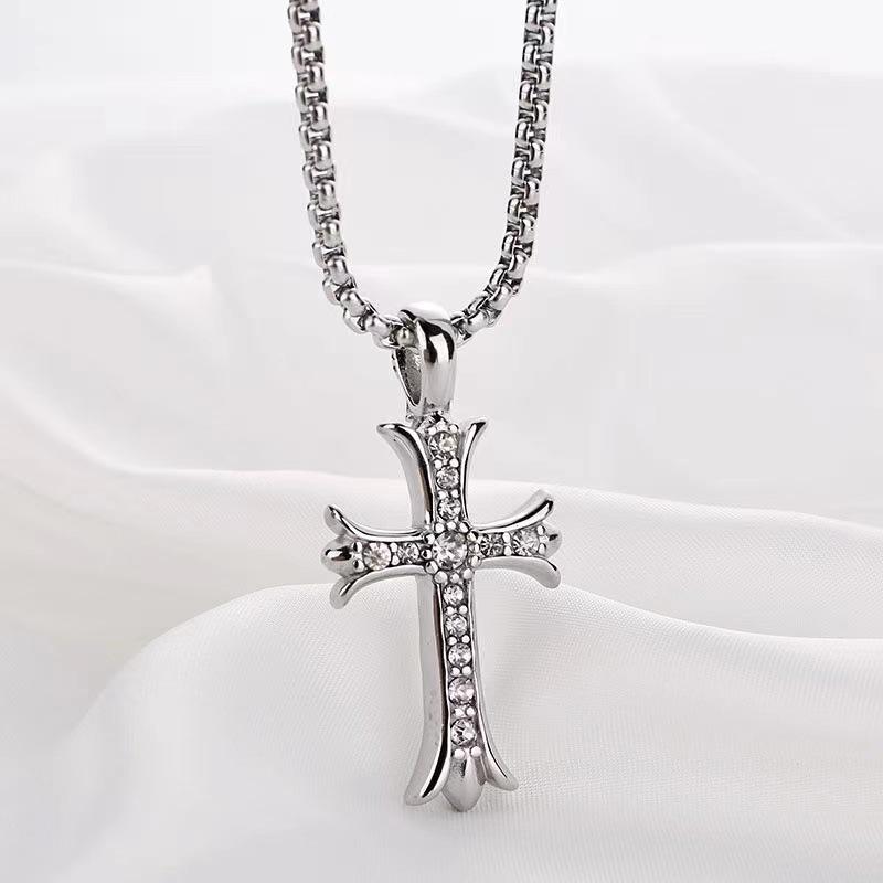 Designable Rhinestone Cross Pendant Sweater Chains for Men Titanium Steel Chain Hip-hop Fashion Jewelry Necklaces