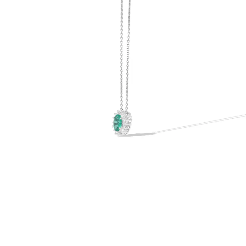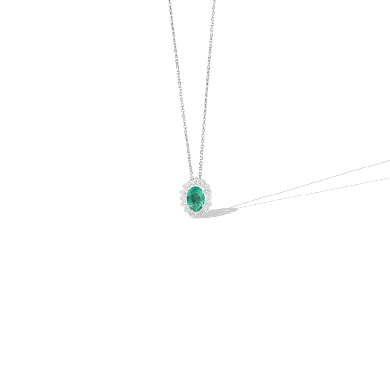 Designer 0.70CT Oval Emerald and Round Natural Diamond Pendant Necklace Solid Gold Lab Grown Diamond 18K Yellow Gold Jewelry