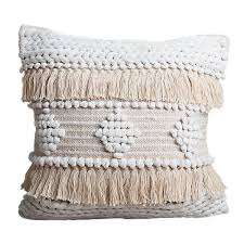 Designer 100% Cotton Shaggy Throw Pillow Cover Hand Woven Geometric Lumbar Cushion for Indoor Outdoor Home Bedroom Decor Hotels