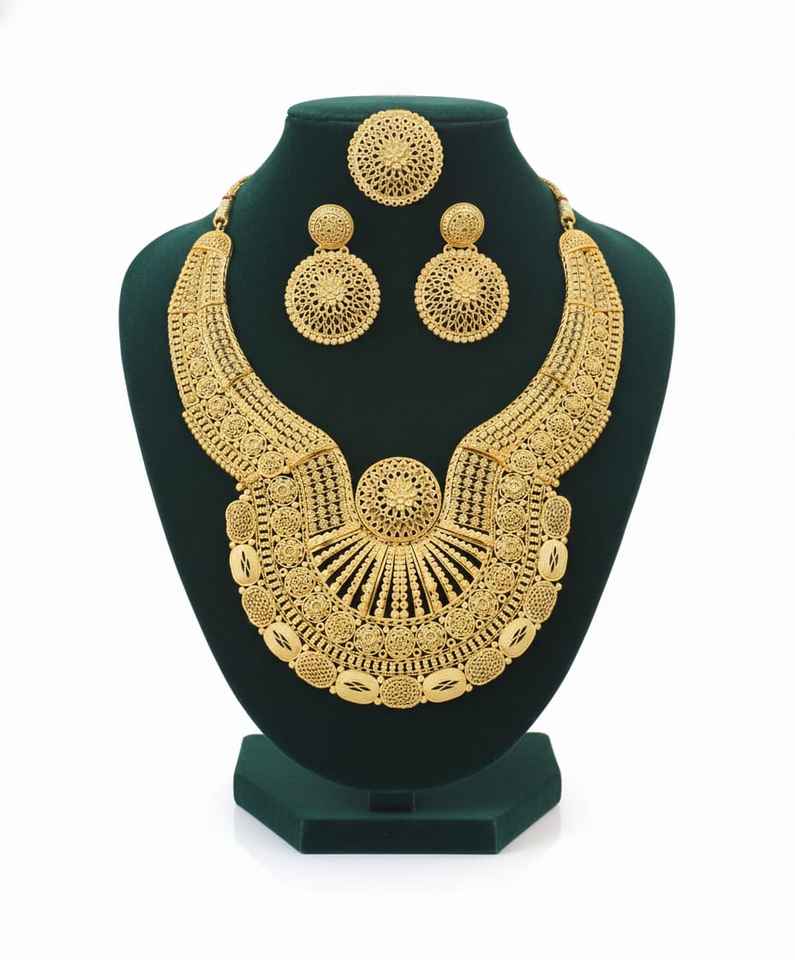 Designer 1K Gold Plated Copper Brass Statement Necklace Set for Women | Bridal Traditional Jewelry | Lightweight Wear