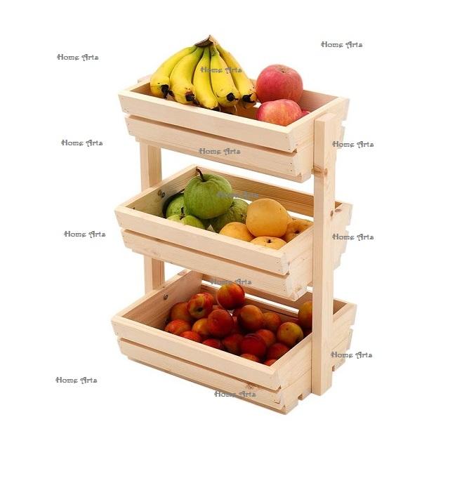 Designer 3 Tier Wood Fruits Basket Finest Quality Customized Size Basket For Fruits Storage Basket By Home Arts