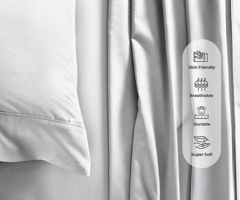 Designer 300 Thread Count King Bed Sheet Set Light Gray Luxury 4 Piece Bed Sheet Available for Sale from India