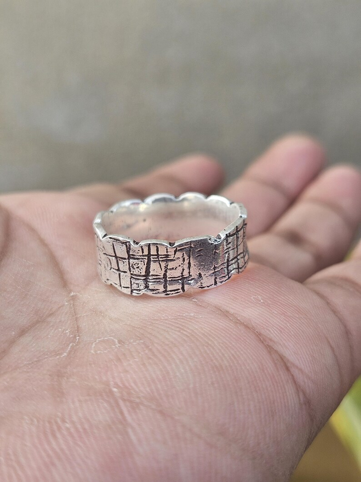 Designer 925 Sterling Silver Band Ring Unique Art Statement Ring with Oxide Finish Stylish Thumb Band Ring