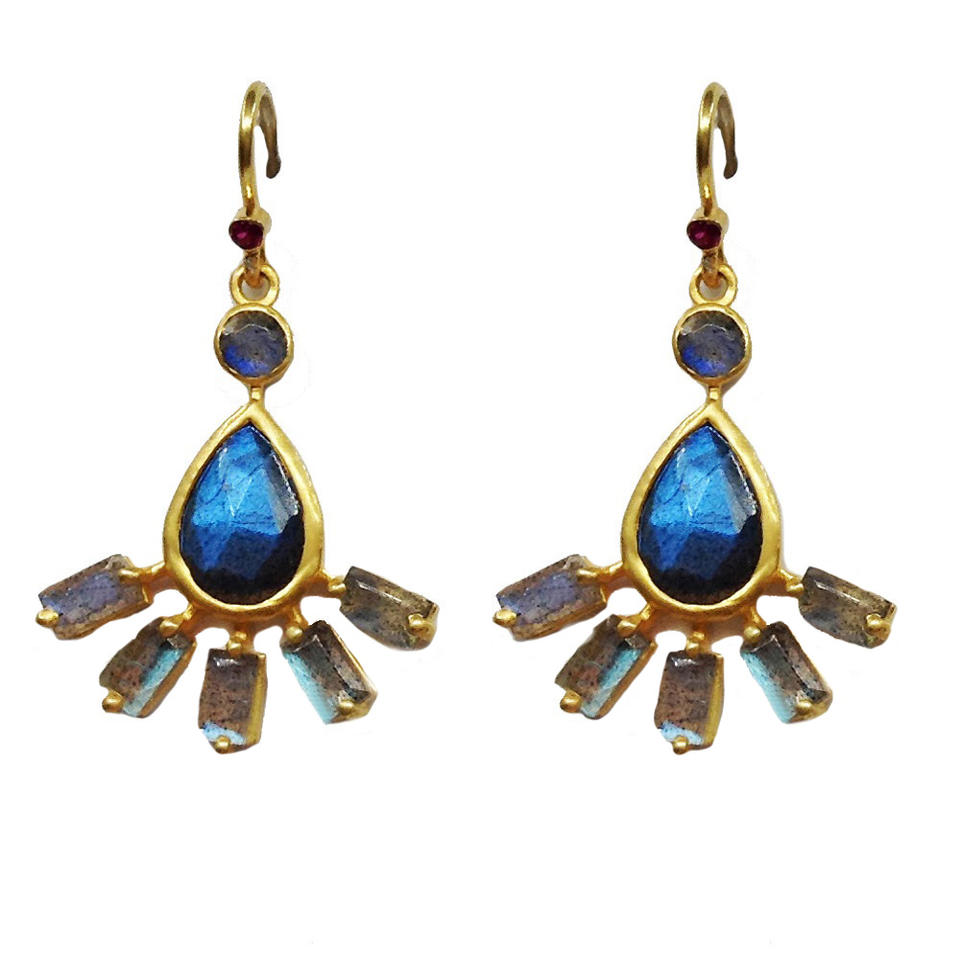 Designer 925 Sterling Silver Gold Plated Garnet Labradorite Gemstone Classic Hanging Wedding Women Earrings