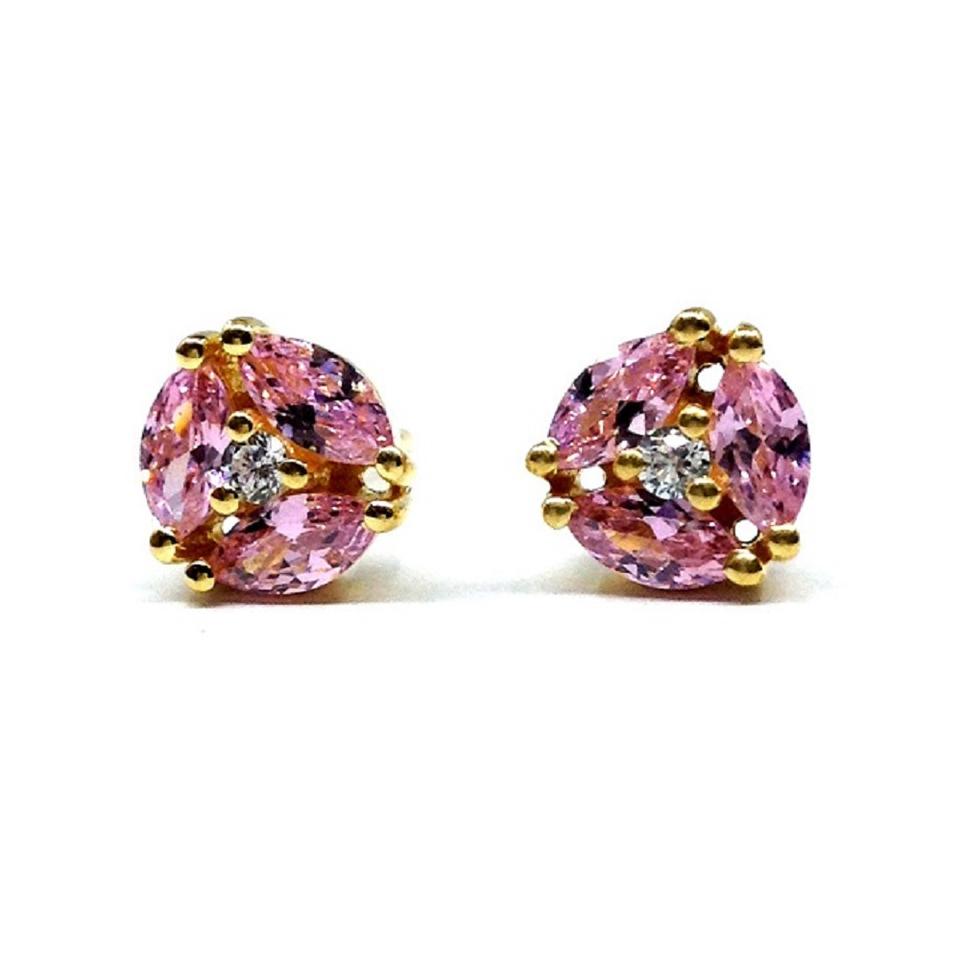 Designer 925 Sterling Silver Gold Plated Pink Tourmaline Gemstone Affordable Vintage Style Studs Earrings