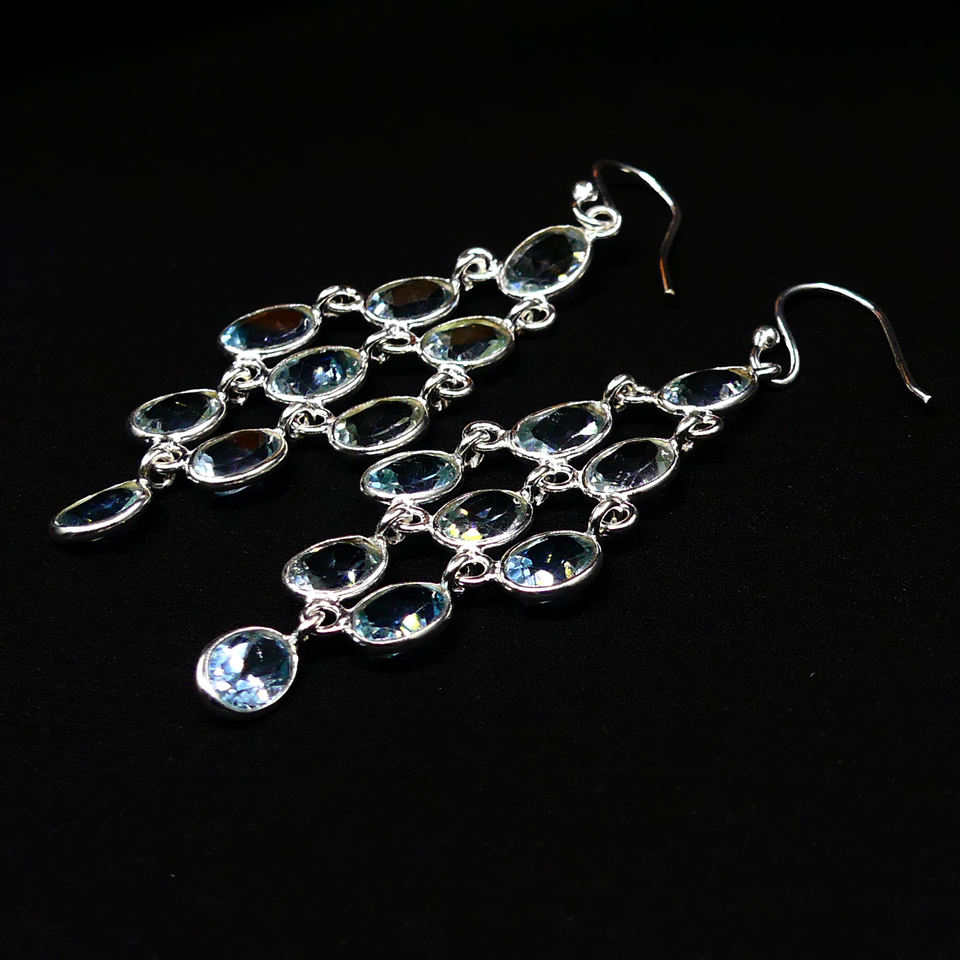 Designer 925 Sterling Silver Gold Plating Blue Topaz Gemstones Traditional Wedding Women Wear Earrings