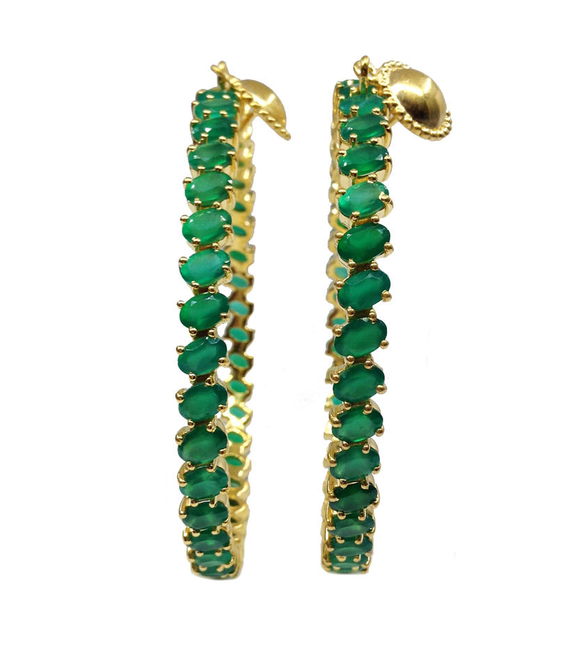 Designer 925 Sterling Silver Green Onyx Gemstone Attractive Cheap Wedding Women Wear Dangler Hoop Earrings