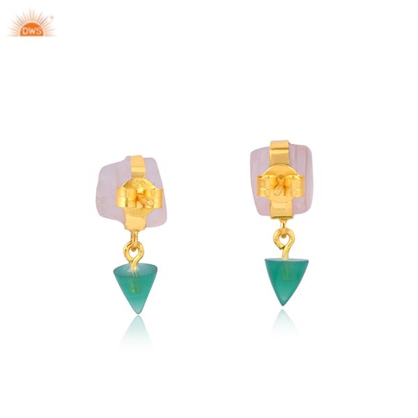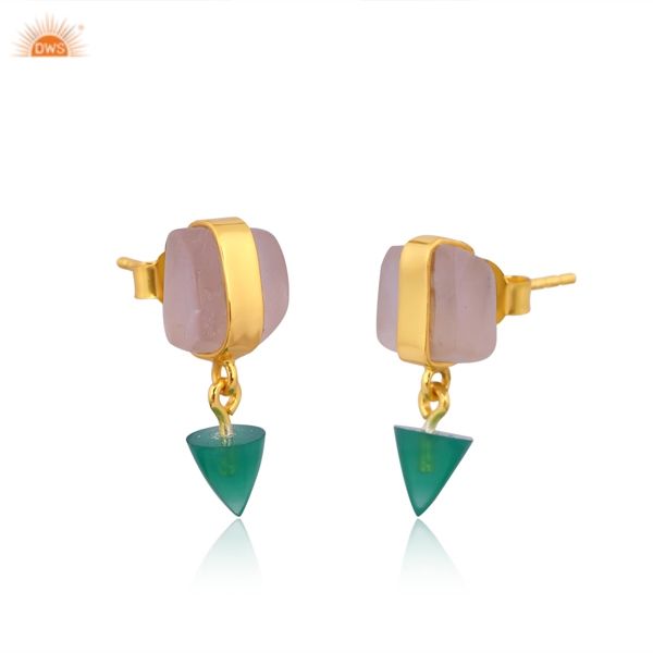 Designer 925 Sterling Silver Natural Rose Quartz and Green Onyx Gemstone Earrings Jewelry Supplier