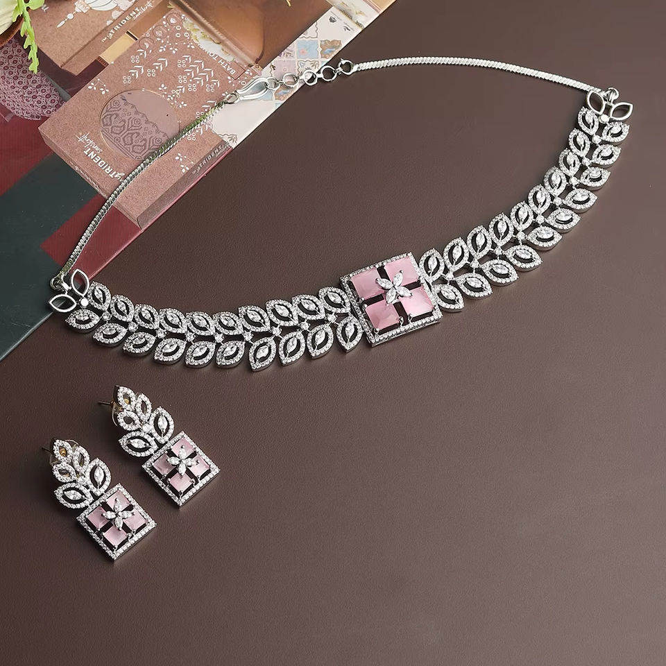 Designer Ad Jewellery Set for Wedding Brides Stylish American Diamond Necklace and Earring Combo Set