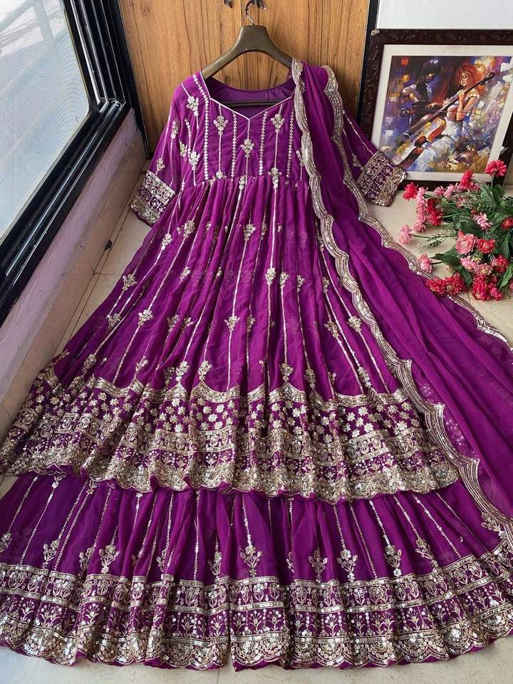 Product Name:Heavy Georgette Sequence Embroidery Anarkali Gown Sharara & Dupatta