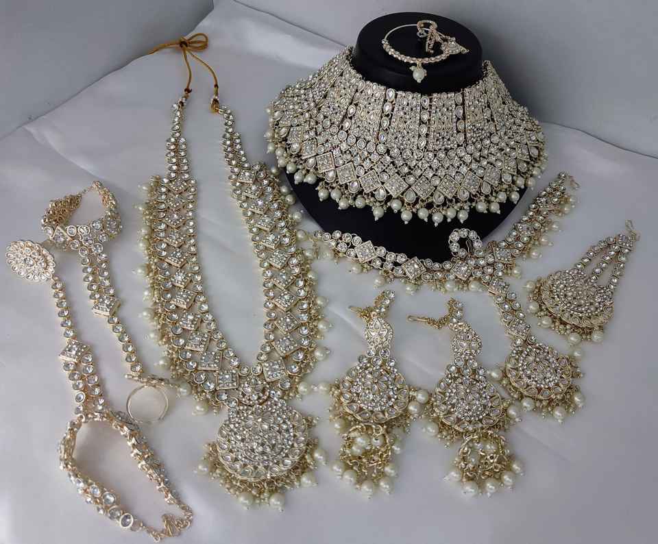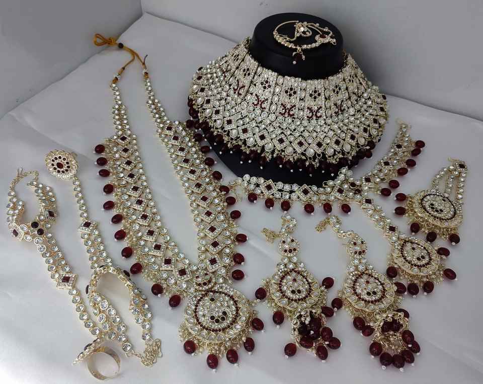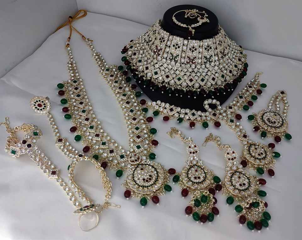 Designer Antique Full Bridal Jewellery Necklace Set With Maang Tikka for Girls & Women