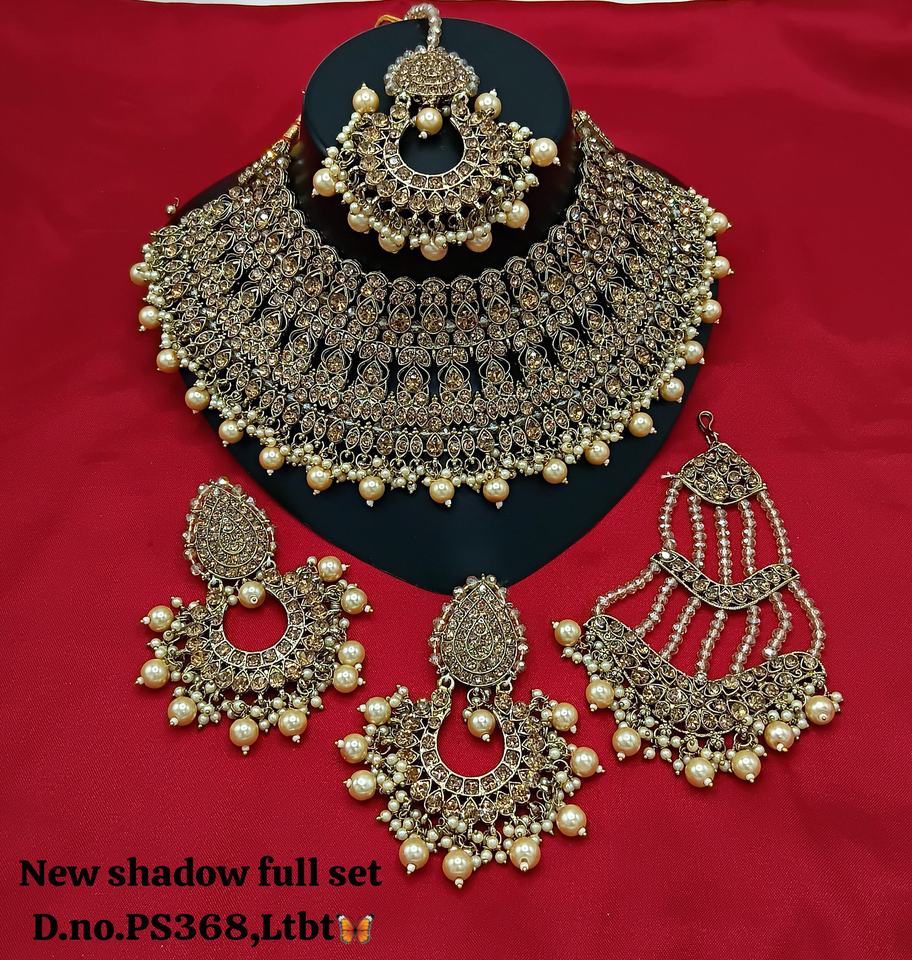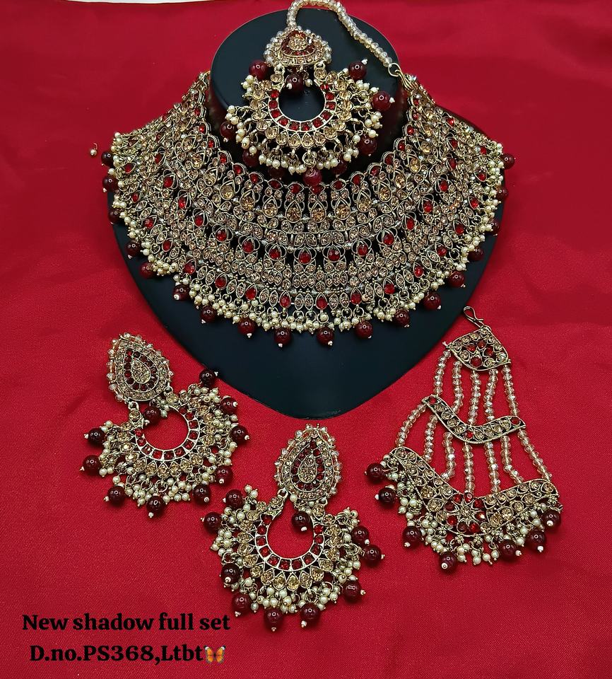 Designer Antique Handmade CZ Studded Thread Work Patwa Indian Necklaces Earrings & Head Wear For Womens & Girl Jewellery Sets