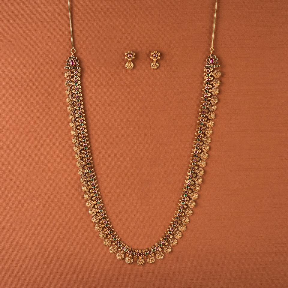 Designer Antique Long Necklace Set Beautiful Matte Gold Plating Fashion Necklaces