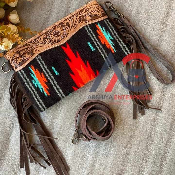 Product name:Hand Tooled Saddle Blanket Fringe Bag