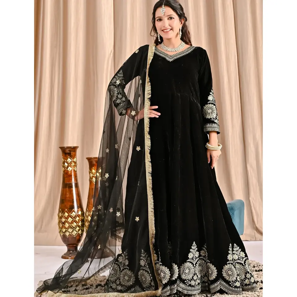 Designer Ball Gown Evening Dress XS-XL Party Wear Velvet Floor-Length Gown Beautiful Empire Dupatta for Weddings Banquets