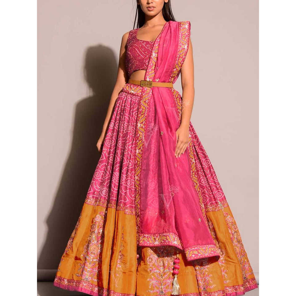 Designer Bandhani Lehenga Choli with Dori Thread Sequence Work Indian & Pakistani Clothing